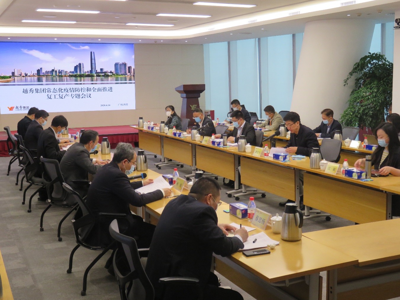 4月14日,越秀集团召开集团常态化疫情防控和全面推进复工复产专题会议,认真学习习近平总书记关于安全生产工作的重要指示精神,传达中央和省、市关于部署落实常态化疫情防控全面推进复工复产工作会议精神,听取各板块上一阶段疫情防控情况和常态化防控措施落实情况,研究安排集团下一阶段工作。集团党委副书记、副董事长、总经理叶珊瑚出席会议并作讲话,集团副总经理谭思马主持会议并传达上级精神。
