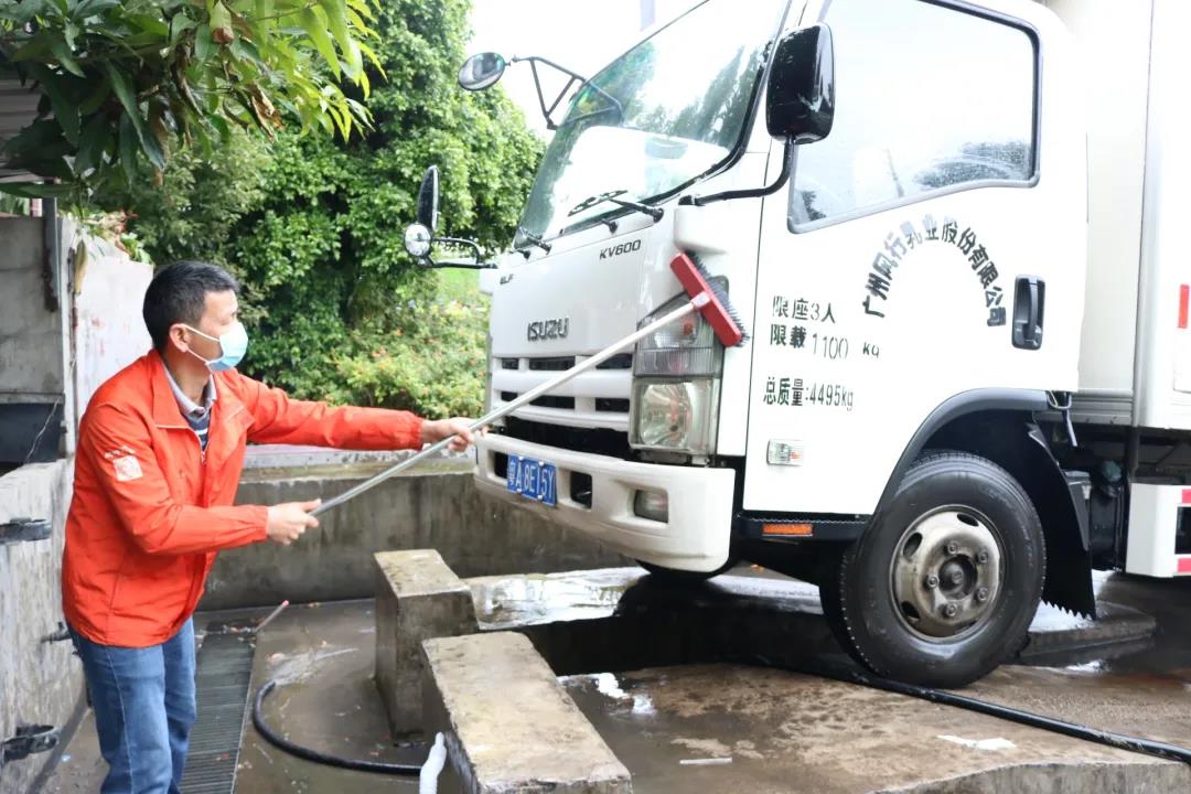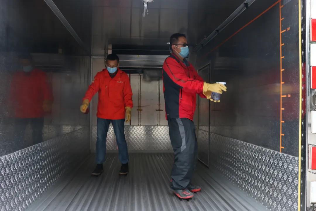 开学前夕,为给第二天的牛奶配送做足准备,风行乳业工作人员对配送车辆进行全面、细致的消毒。