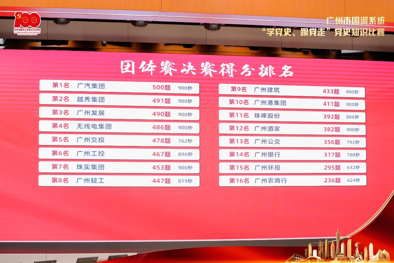党史竞赛显身手 以赛促学创佳绩 越秀集团获得市国资系统“学党史、跟党走”党史知识比赛团体赛特等奖